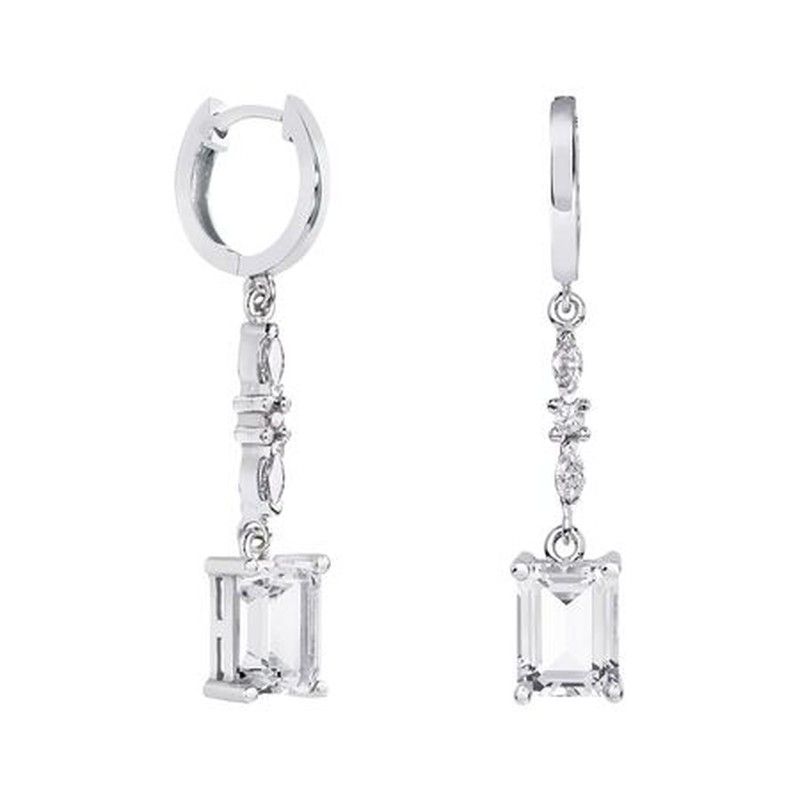 18kt White Gold Earrings Rectangle Argyor MRM 8x6mm (18)79B0305TB1 White Topaz. Earrings made of 18kts white gold 750/000 (18K). Weight 4.40gr. Smooth hoop shaped heads, click closure. Central design of each earring with two marquise cut white topazes of 3x1.5mm and a brilliant cut white topaz of 2.00mm. Finished with two emerald cut Topazes 8x6mm in white color. Certificate of authenticity and quality guarantee on manufacturing materials. Ref (18)79B0305TB1