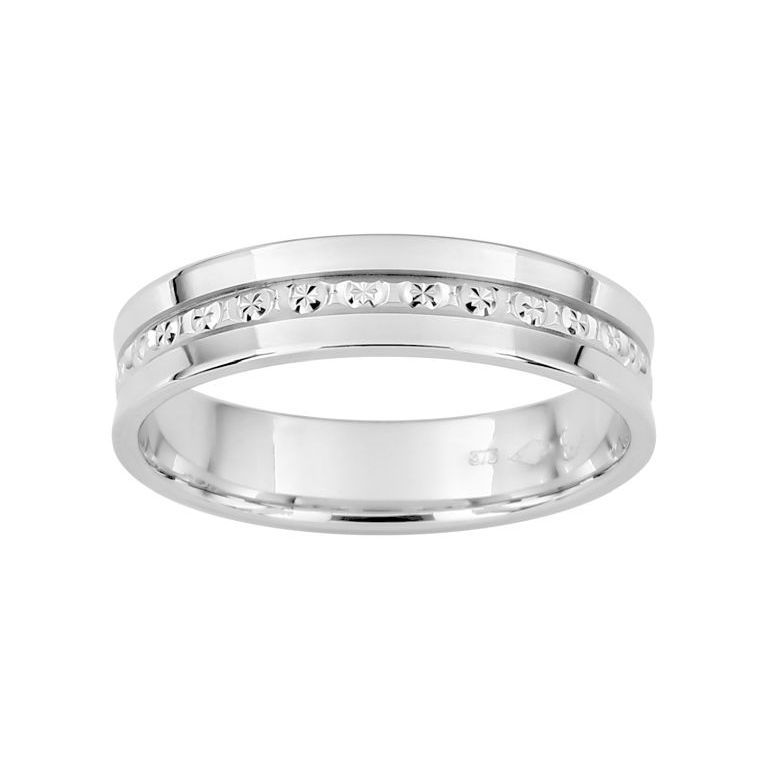 Argyor-MRM 9kt White Gold Ring 4.5mm (9)9KMB745 Diamond Pattern. Wedding band made of 9kt 375/000 (9K) White Gold. Sizes 08 to 33. Diamond Pattern Design. Measurements 4.5mm. Weight 2.71g. - 4.12g. Certificate of authenticity and quality guarantee on manufacturing materials. Ref (9)9KMB745