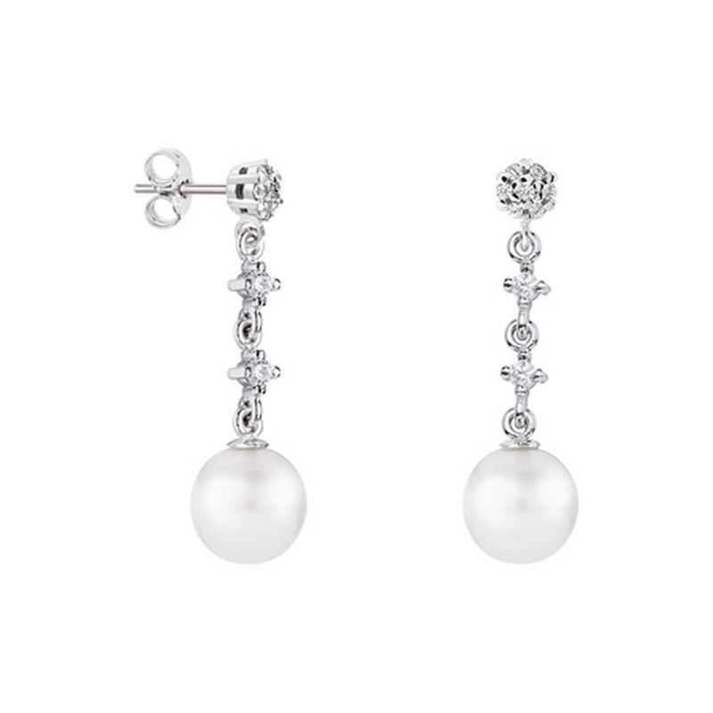 Argyor MRM 8mm Sphere Silver Earrings (AG)79B0602TD1 Pearl Topaz. Earrings made of 925 sterling silver 925/000. Weight 1.62gr. Rosette-shaped heads with 7 white topazes, total 14 topazes of 1.10mm. Pressure closure. Central design of each earring with two 2.00mm white topazes. Finished with two 8mm round white pearls. Certificate of authenticity and quality guarantee on manufacturing materials. Ref (AG)79B0602TD1