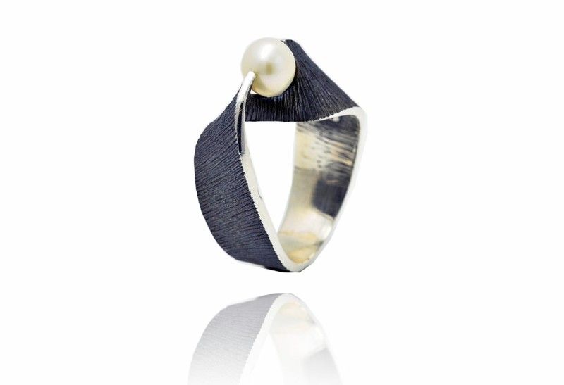 Arior Silver Ring 1182848XU - Size 16 Large Moebius With External Pearl