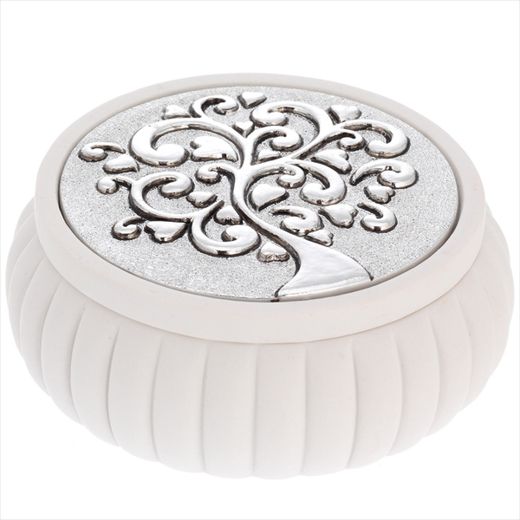 Caja Redonda 8x4cm 2160-03P Tapa Detalle Árbol Corazones