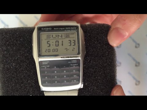 Casio Men's Steel Watch DBC-32D-1AES Data Bank Calculator. Steel case and strap. Black bezel. Stopwatch, calculator, 5 alarms, light, calendar, currency converter, different languages. Quartz. Submersible 50m. 2 years warranty. Ref. DBC-32D-1AES
