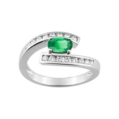 Christian Bernard 18kt White Gold Ring (18)1.6084.E1 Diamonds With Central Emerald