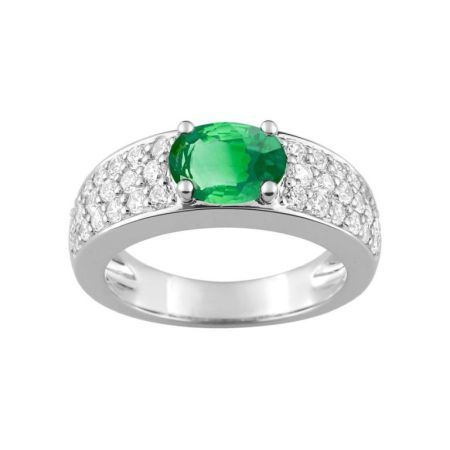 Christian Bernard 18kt White Gold Ring (18)1.6098.E1 Diamonds With Central Emerald