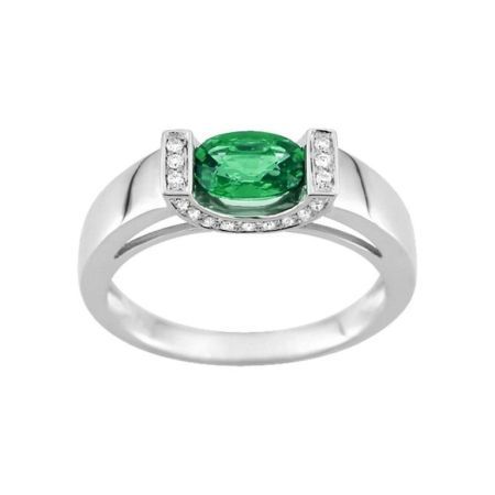 Christian Bernard 18kt White Gold Ring (18)7VP070GEB Diamonds With Central Emerald. Ring made of 18kt White Gold 750/000 (18K). Sizes 08 to 22. Diamond Design 0.10 ct With Central Emerald. Weight: 3.56g. - 4.59g. Certificate of authenticity and quality guarantee on manufacturing materials. Ref (18)7VP070GEB
