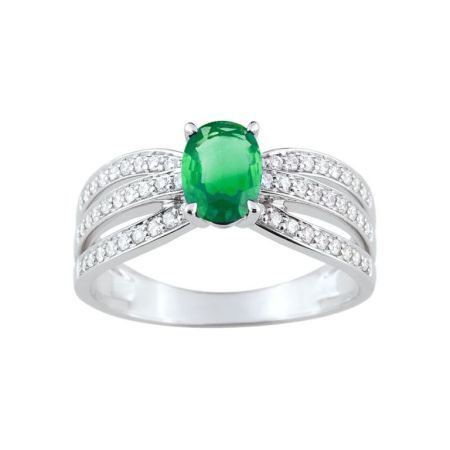 Christian Bernard 18kt White Gold Ring (18)7W007GEB2 Diamonds With Central Emerald