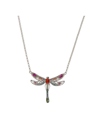 Colgante Plata Mujer PGAR887 Libélula Circonitas Rojas