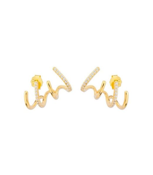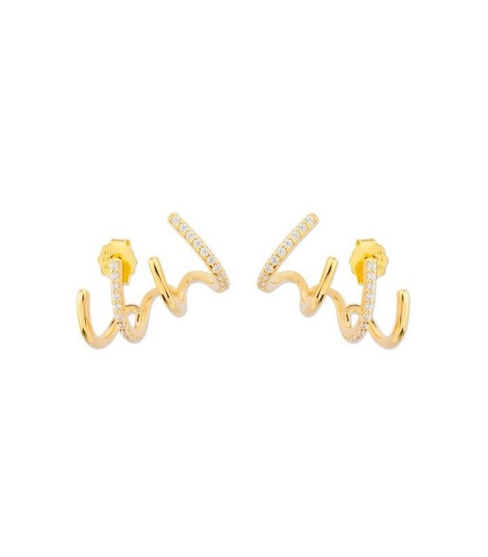 Liska MED341A-D Curved Cubic Zirconia Gold-Plated Earrings. Crafted in 925 sterling silver with 18kt gold plating. Curved design with cubic zirconia. MEDITERRANEA Collection. Certificate of authenticity and quality assurance for manufacturing materials. Ref. MED341A-D
