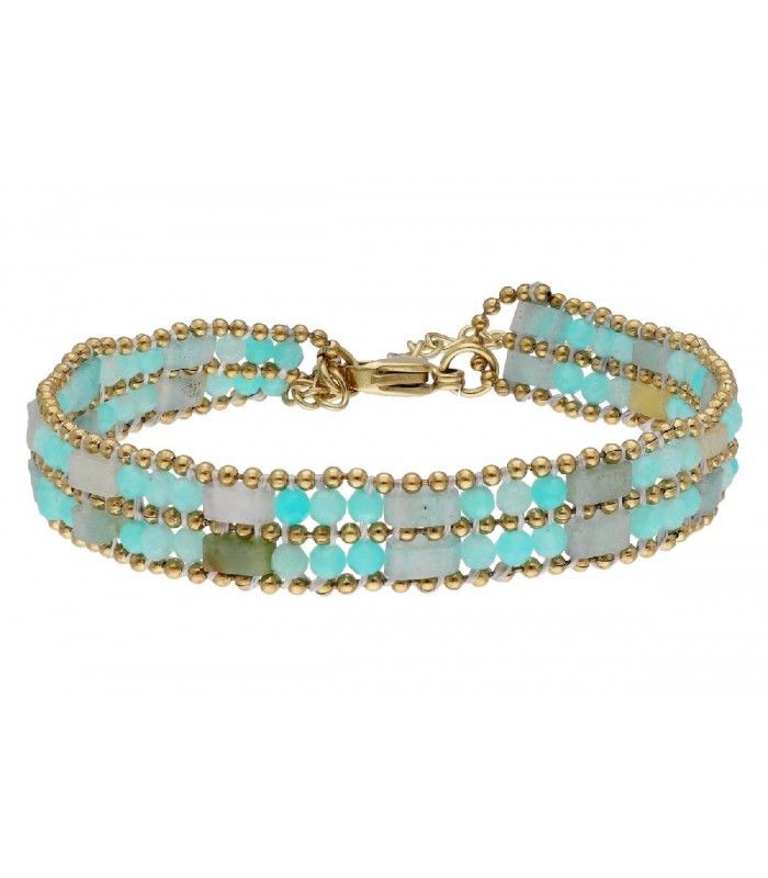 Liska Women's Gold-Tone Steel Bracelet SHA188 with Natural Turquoise Stones. Bracelet made of gold-tone steel and natural stones. Lobster clasp. Turquoise stone design. SIDDHARTHA Collection. Certificate of authenticity and quality guarantee on manufacturing materials. Ref. SHA188