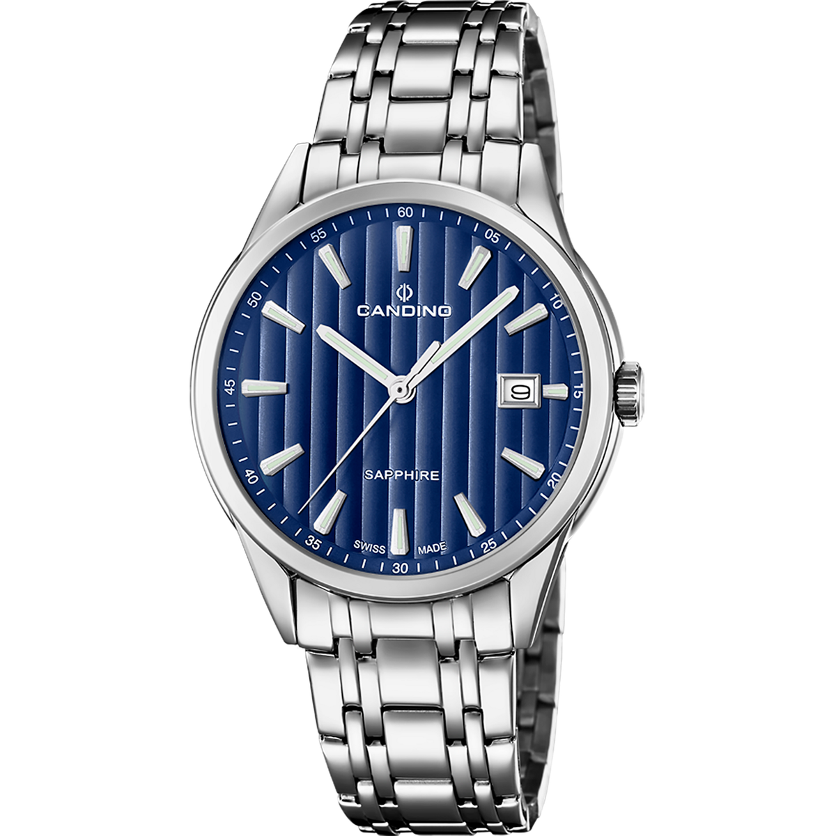 Reloj Candino Hombre C4614/B Swiss Made Acero Analógico. Caja de acero de 40,5mm de diámetro. Bisel plateado. Brazalete de acero inoxidable. Cierre desplegable. Esfera Azul. Multifunción, calendario. Cristal zafiro. Movimiento quartz suizo. Swiss Made. Sumergible 50m. 3 años de garantía. Ref C4614/B
