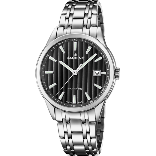 Reloj Candino Hombre C4614/D Swiss Made Acero Analógico. Caja de acero de 40,5mm de diámetro. Bisel plateado. Brazalete de acero inoxidable. Cierre desplegable. Esfera negra. Multifunción, calendario. Cristal zafiro. Movimiento quartz suizo. Swiss Made. Sumergible 50m. 3 años de garantía. Ref C4614/D