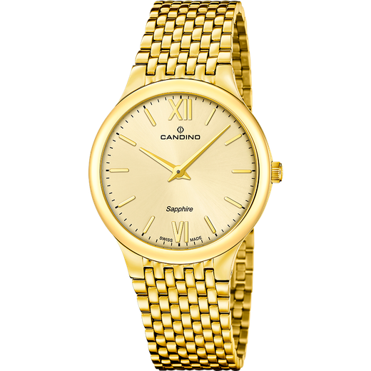 Reloj Candino Hombre C4790/2 Acero Dorado Analógico. Caja de acero dorado de 39mm de diámetro. Bisel dorado. Brazalete de acero inoxidable dorado. Cierre oculto. Esfera dorada. Cristal zafiro. Movimiento quartz. Swiss Made. Sumergible 50m. Peso 91gr. 3 años de garantía. Ref C4790/2