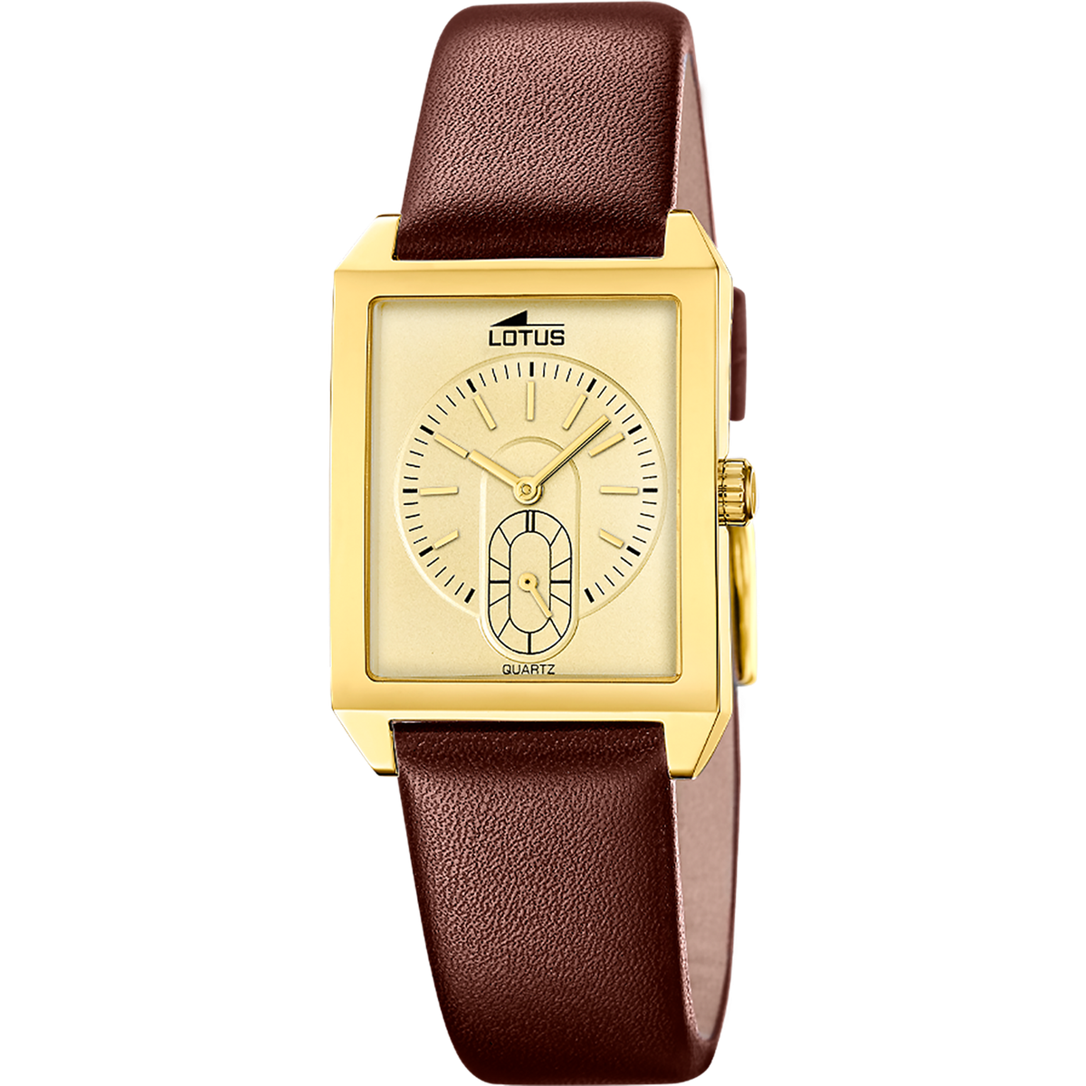 Reloj Lotus Hombre 19079/2 Piel Marrón Acero Dorado Analógico. Caja de acero dorado de 33,5x28,5mm de diámetro. Bisel dorado. Correa de piel marrón. Cierre hebilla. Esfera dorada. Cristal mineral. Movimiento quartz. Sumergible 50m. 3 años de garantía. Ref 19079/2
