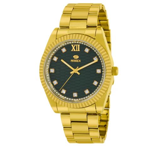 Reloj Marea Mujer B41444/5 Acero Dorado Analógico. Caja de acero dorado de mm. Bisel dorado. Brazalete de acero inoxidable dorado. Cierre desplegable. Esfera verde. Cristal mineral. Movimiento quartz. Sumergible 0m. 3 años de garantía. Ref B41444/5