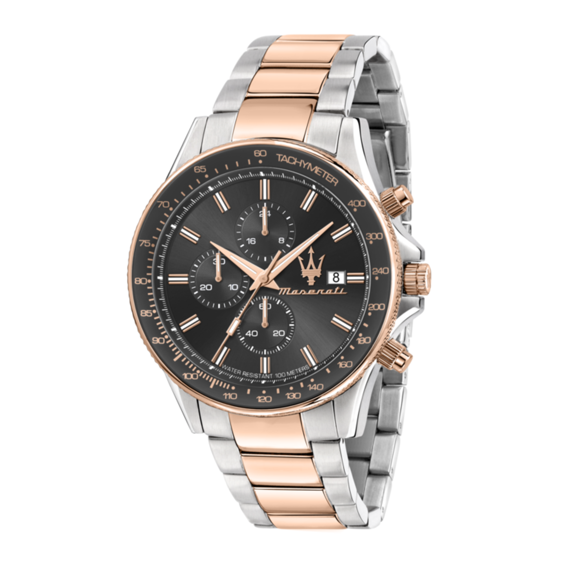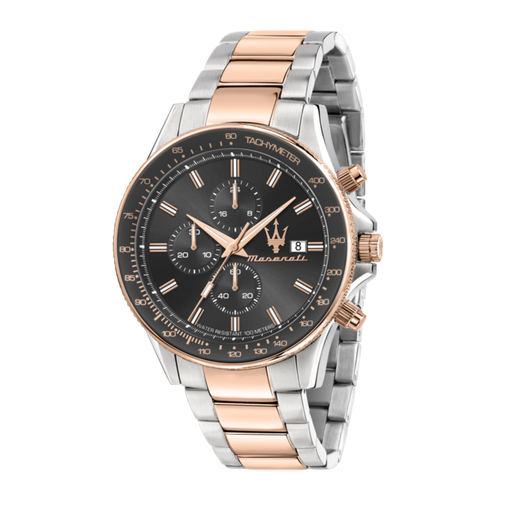 Reloj Maserati Hombre R8873640014 Sfida Negro Cronógrafo Acero Plateado Bicolor Rosa Analógico