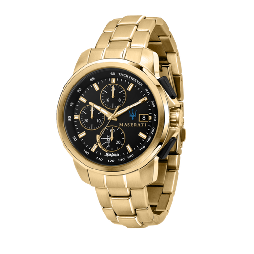 Reloj Maserati Hombre R8873645002 Successo Negro Acero Dorado Solar Analógico