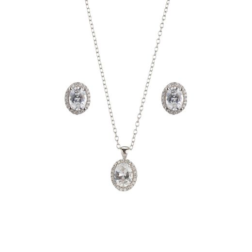 Set Colgante - Pendientes Plata 9mm SEC0002RH Circonita Blanca Ovalada