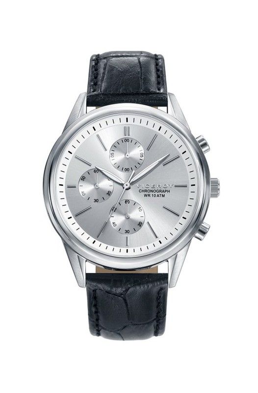 Viceroy Men's Watch 401121-07 Black Leather. Steel case and black leather strap. Silver dial. Chronometer. Submersible 100m. 2 years warranty. Ref. 401121-07