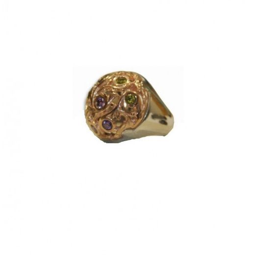 Xernus Two-Tone Gold-Plated Silver Ring 1RG2188 with Filigree and Multicolored Crystals. Ring made of 925 sterling silver. Size 14. Filigree design with multicolored crystals. Certificate of authenticity and quality guarantee on manufacturing materials. Ref. 1RG2188
